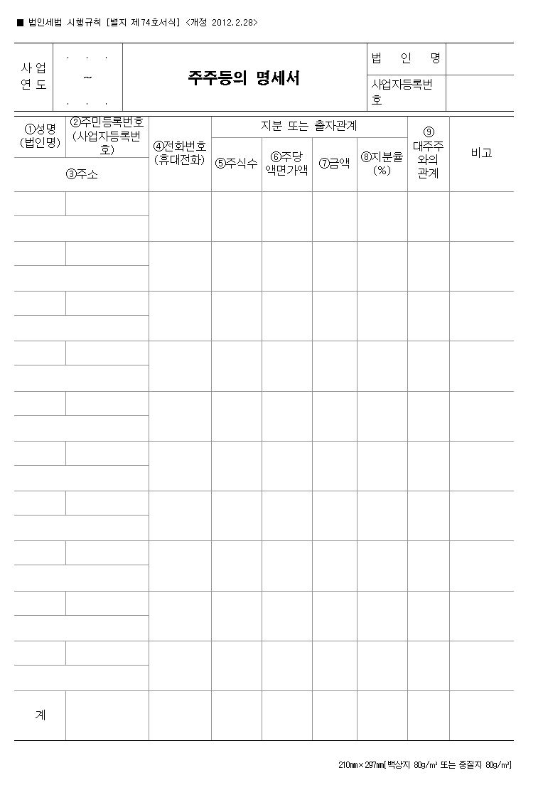 미제출시 주주명세서 미제출가산세 0.5% 해당합니다.