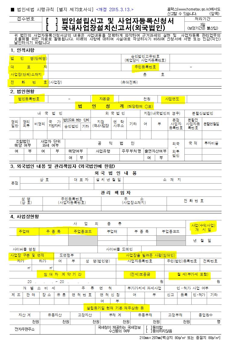 이상으로 법인사업자의 법인설립 및 사업자등록신청시