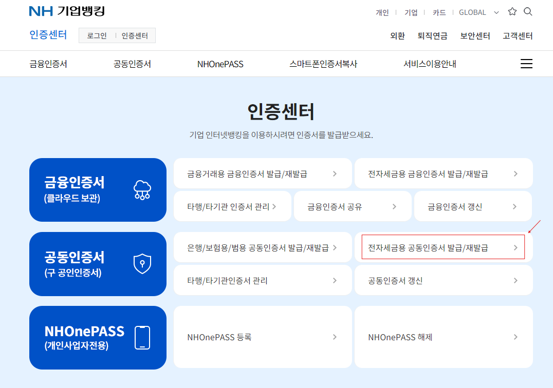 농협인터넷뱅킹 홈페이지 기업뱅킹 인증센터